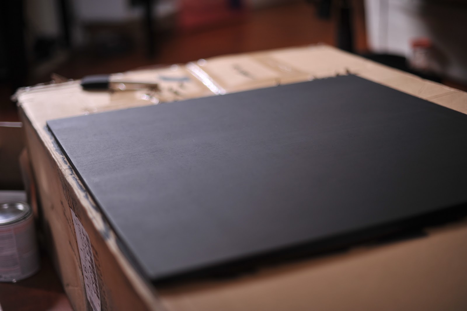 A lot of these signs I have purchased but a bride recently asked me about a chalkboard sign that would be big enough for her to write her menu on and display at the reception. I knew I didn’t have anything that big and I looked around a little online. You know what stinks about online shopping? The cost of shipping. So the creativity bug in me got moving and I headed to Home Depot (yes, we have one here!) and picked up this 24×24 board, primer and chalk board paint!