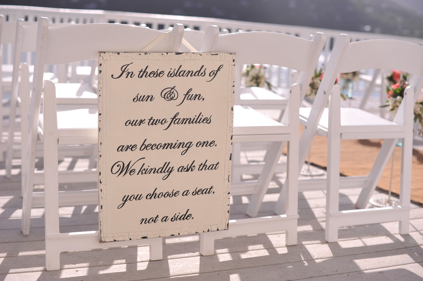 Including a Maryland style crab mallet! Her reception wasn’t the only beautiful thing about this wedding. Unfortunately the water at the beach at Sand Dollar was a little too high for the ceremony so we moved it to the pool deck, but look how beautiful the setup was!