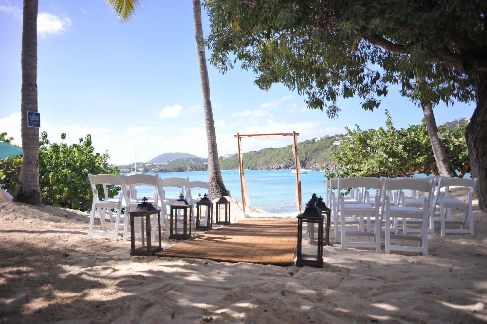 Our lanterns in use at Secret Harbor Beach Resort (a nice shady spot for the guests!)