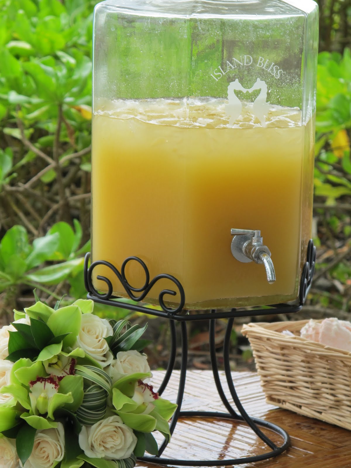 Don’t you just love our new drink dispenser? I’ve been meaning to buy one for awhile. When we’ve had punch at beach side weddings in the past, I’m trying to coordinate but also run around and fill up guests’ drink glasses. Now I can just set out the punch and let guests help themselves.