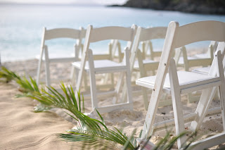 Lovely sunset wedding on St. John. This set up – just palms and a burlap runner, was very pretty.