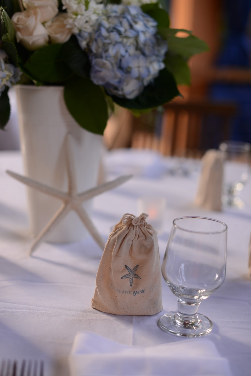 And I loved this favor idea – cute little bags with a stamped starfish and inside? Mini bottles of Cruzan Rum!