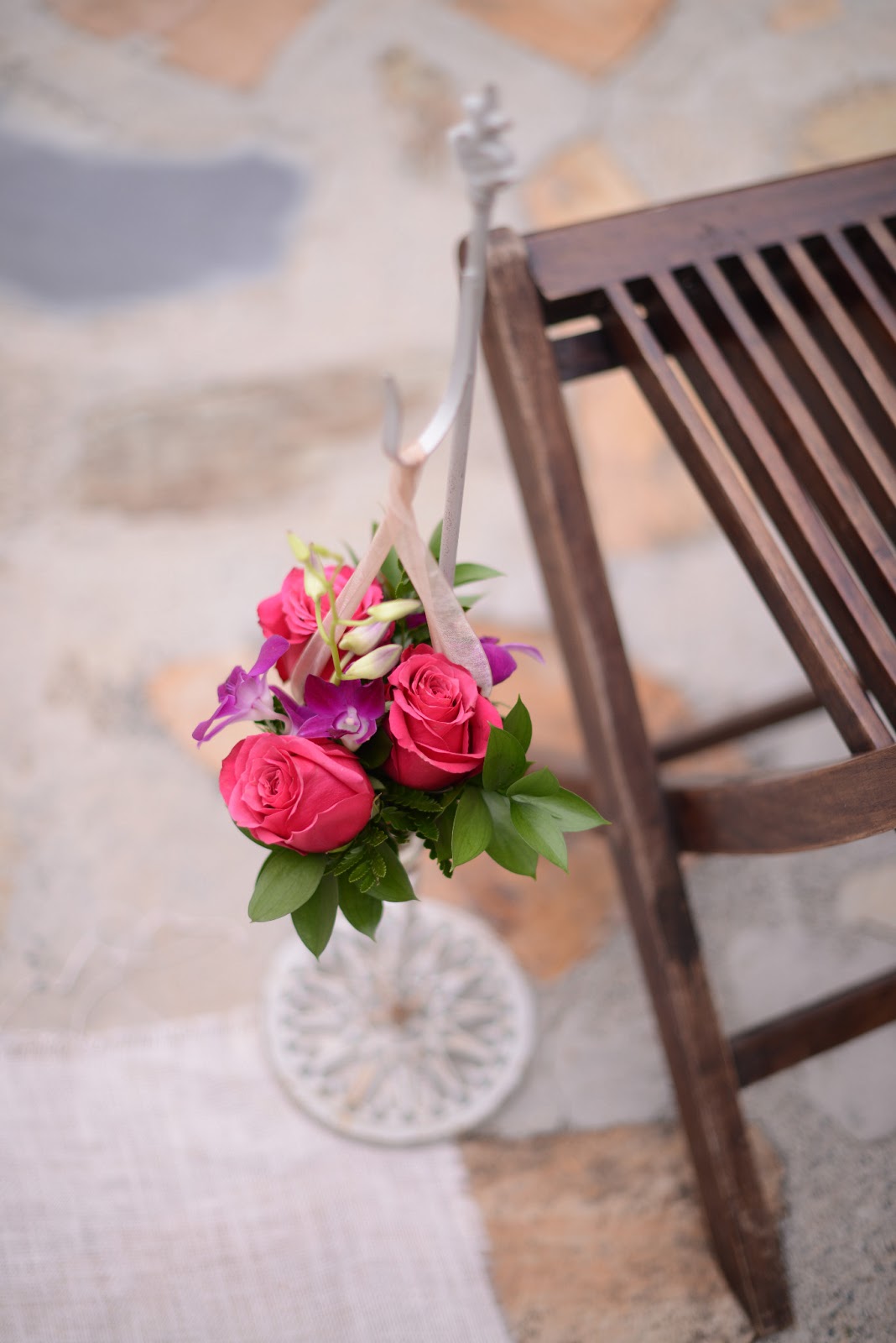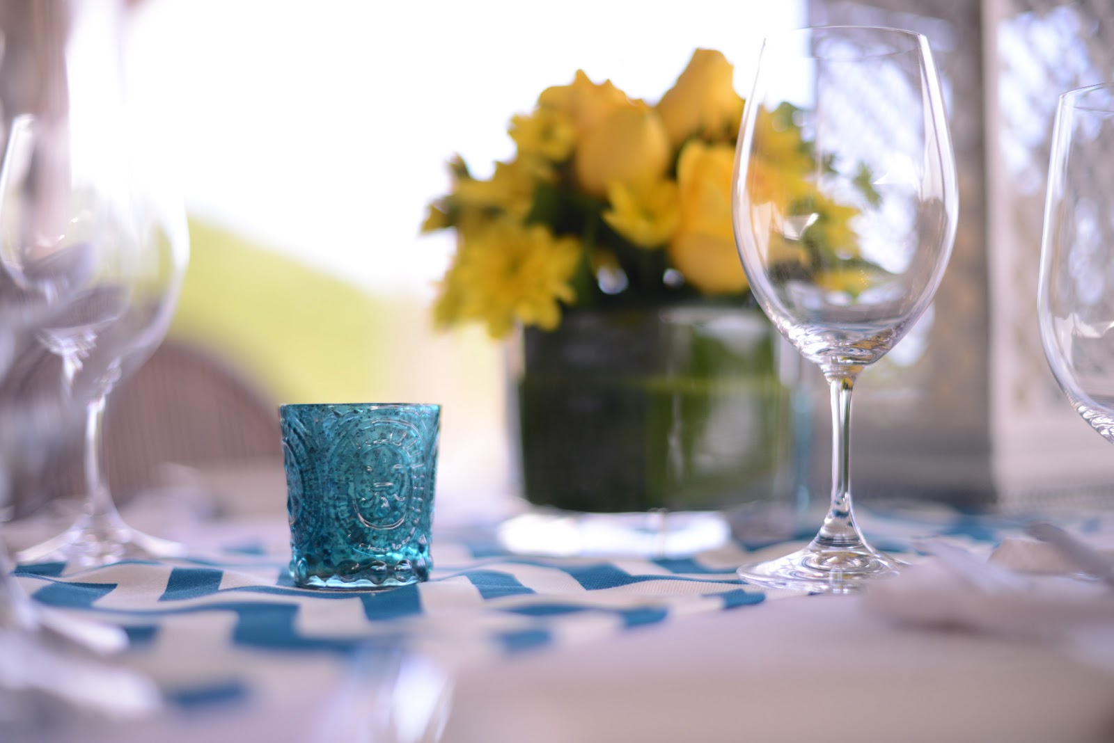 You can’t really tell in the photo below but the blue and white in this centerpieces really complimented the blue fabric at Villa Botanica – it really pulled it all together very nicely.