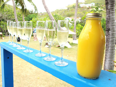 I had a lovely wedding yesterday on Lime Tree Beach (aka Bluebeard’s Beach Club). We knew in advance that many of the guests did not really enjoy champagne, so we brought a bottle of OJ for guests to make mimosas. I really didn’t want to bring a carton of OJ with me to an elegant wedding – something just didn’t seem right about pouring from a Minute Maid jug into a champagne flute! So I brought along this beautiful Mason jar. I really like the way it presented itself!