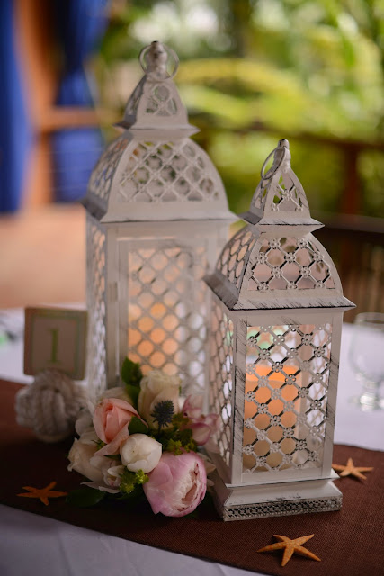 But I think this simple centerpiece is not as simple as it appears – it’s deceiving, that centerpiece is lying to you!! First, the price tag. With the fresh sand (you can’t use beach sand for this), the vase rental and the flowers (a peony is most likely going to be used here instead of the garden rose), delivery and set up, you’re looking at $30 per vase. $30 for a centerpiece isn’t bad, I agree. But that’s where the photo is deceiving. This vase is really not all that large is size and would look very small on a table by itself. It should be used as an accent piece to a larger centerpiece. If you look closely at the photo, you can see there are two more of these vases in the background. You’ll need to use a lot of them to make an impact on the table. Then the simple centerpiece idea starts to add up in price.