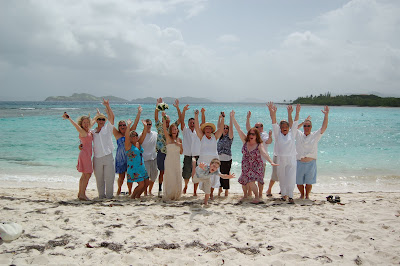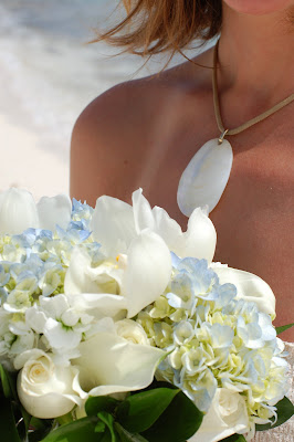 What a beach wedding is all about… by Island Bliss Weddings | Jul 28, 2009 | Uncategorized Seashell necklace, orchid bouquet, sand, sea and just a touch of tan lines! And not to mention a lot of great friends & family. I had to share this photo – do you notice the nine year old boy trying to fly out of the picture??