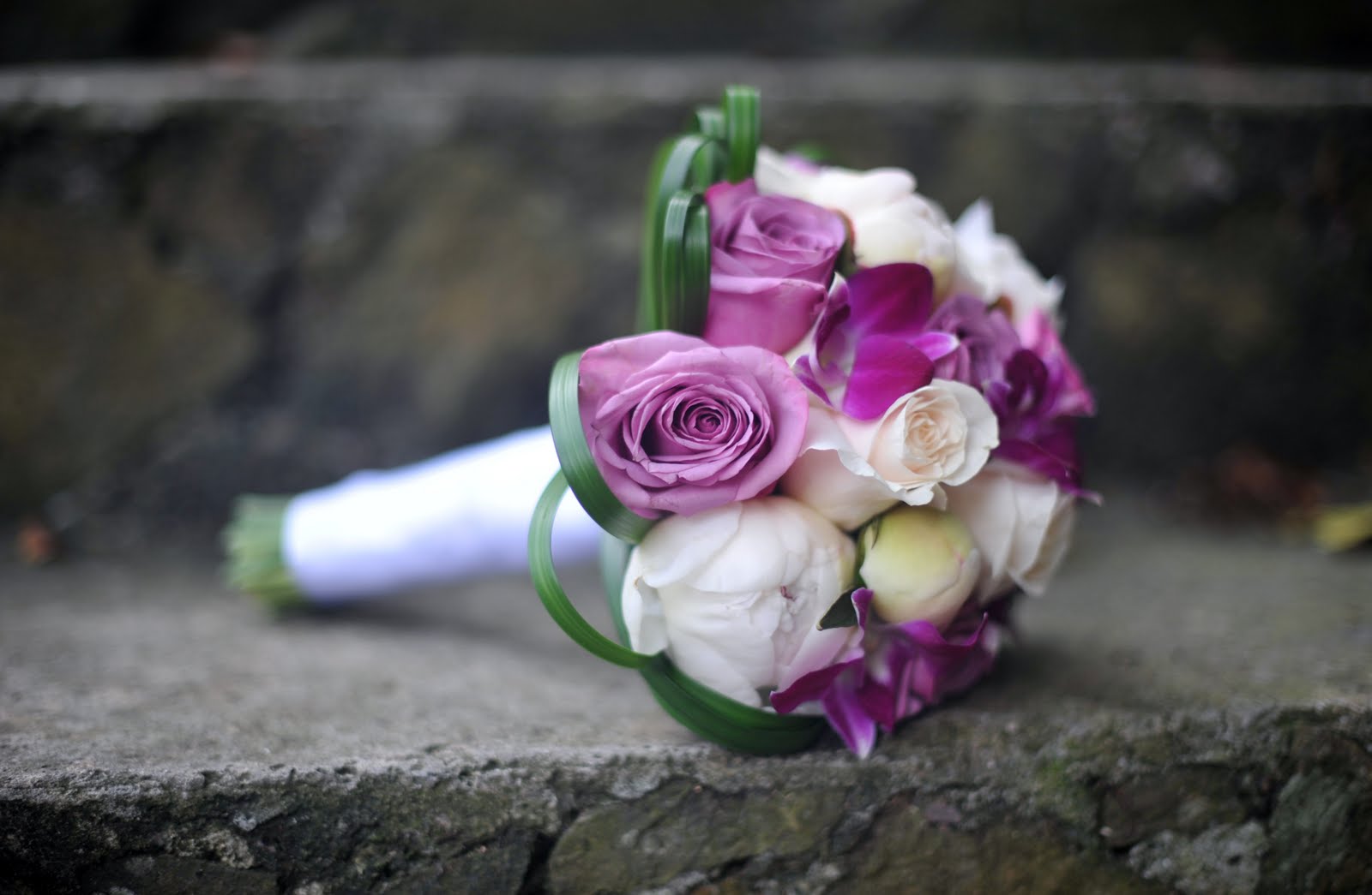With just the simple request of ivories and purples, we received a bouquet of roses, dendrobium orchids and peonies. Now, here’s the kicker…if the bride would have asked me to order lilac and ivory roses with peonies and purple dendrobium orchids…this bouquet would have been an additional $110 to her package price. This is because the flowers above are what the florist happened to have in stock when it was time to make the bouquet. She knew a month in advance that she would need these colors – but she was able to adjust her order so that she’d have these colors while still keeping other orders in mind. If the bride was specific on the type of flowers used, then the florist would have adjusted her order to make sure these specific flowers were in stock and by doing that, she would have had to increase her order…therefore increasing the cost of the bouquet.